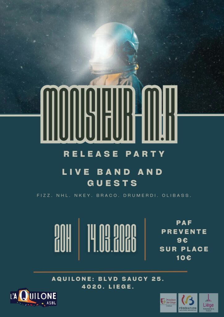 Monsieur MK nous dévoile son nouveau travail en compagnie de sa live band et ses Guests : Fizz, NHL, Braco, Drumerdi et Olibass, une soirée à ne pas rater!!!